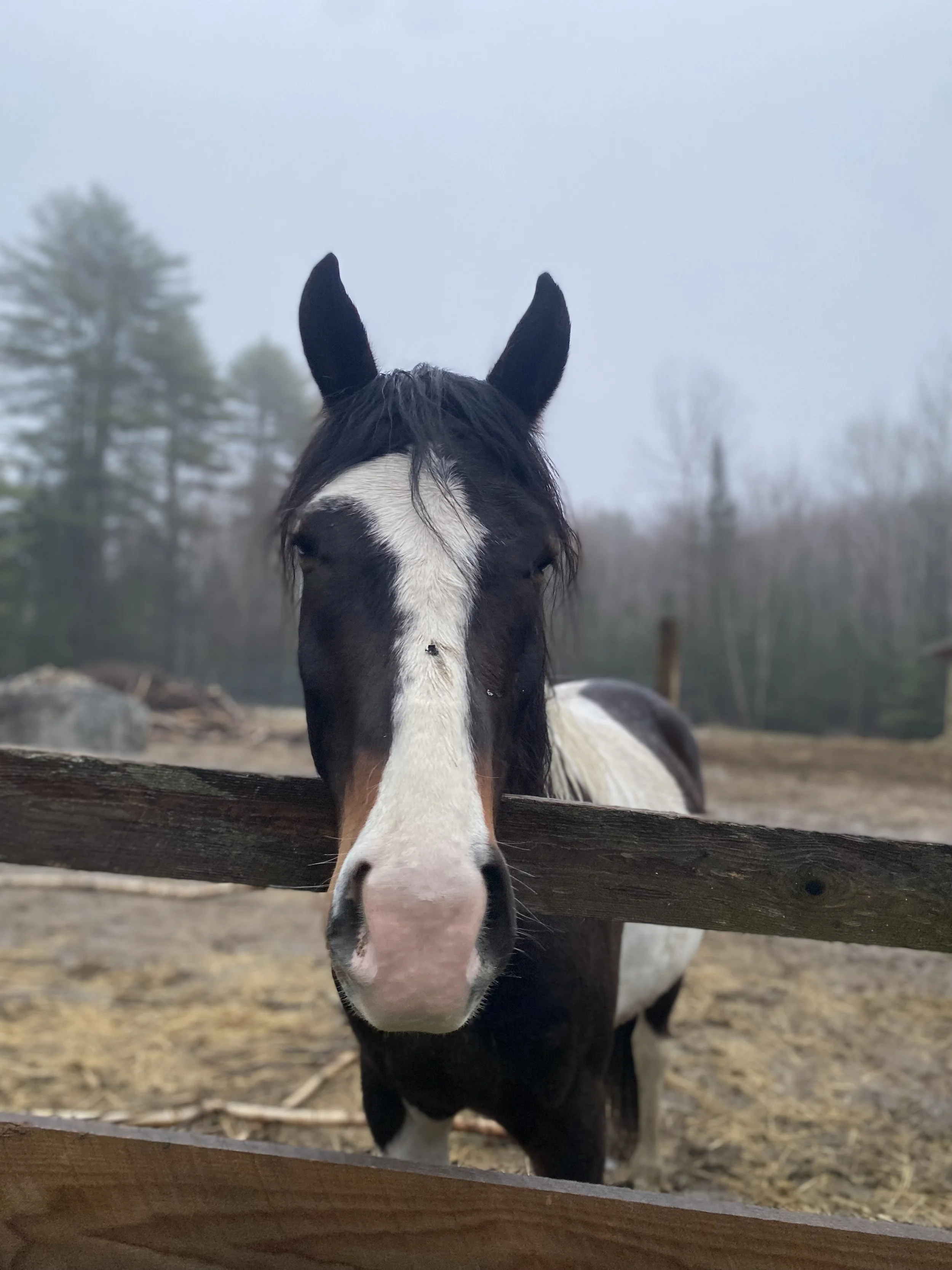 Maverick was born here on the farm and is the baby of the bunch! At 4 years old, he is just learning how everything works. He is not used for the programs yet, but hopefully he will be soon! He loves showing off and will happily accept any treats! It is very hard to get a picture of him clean, so this one with some dirt on his nose will have to do!